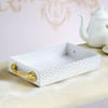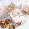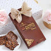 A heavenly curation of aqua pink and sweet avalanche roses, gold-sprayed leather ferns, almond brittle brownie, almond brittle coffee, floral-infused tea, peri peri almonds, black pepper cashews and a white couple rakhi, deftly spread across a gold and white motif tray. The assortment isn't just a versatile spread but a tasteful gift of relaxation that compels you to savour the pause and spend quality moments with your siblings.