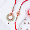 For your forever confidantes and keepers, you go the extra mile. Gift your brother and sister-in-law a disposition so thoughtful, it will fill their hearts with joy - Caramelised sesame almonds, black pepper cashews, floral-infused tea box, centre-filled choco cookies and Luxury Peach Couple Rakhi
