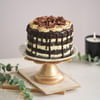 A gift made to leave an impression, this is sweetness styled with intention. Pristine white roses, ruffled white carnations, santiny with striking black centres, spray chrysanthemums, white orchids, fresh eucalyptus, and wisps of springery come together in a tall black hat box wrapped in black frosted paper. Paired with a truffle chocolate cake, it is a gesture expressed not in words, but in form, feeling and thoughtful detail. Disclaimer: All cakes are Baked to order and 100% Eggless.