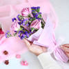 An explosion of fine taste, mindful essentials and blooming joy, the wicker basket assortment is something out of the ordinary. It's a curation that holistically offers everything - Be it the floral finesse of purple roses and statice, the calming benefits of peony fragrant potpourri and floral-infused radiant tea box for beauty or the decadence of protein energy bars and strawberry cupcakes with fondant floral sprinkles,the hamper serves as an impressive gift for your loved ones.