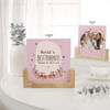 Give your parents a gift of love and memories which they will cherish dearly. Wrapped in a pastel sheet are an assortment of roses, carnations, Peruvian lilies, and mauve sea lavenders, creating a beautiful display of contrasting hues. Accompanying the bouquet is a double-sided photo frame with a wooden base featuring the words World's Best Parents on one side and a personalized image on the other. The lovely design and compact size of the frame make it convenient to place anywhere. Make it special by adding your picture together, giving it a personal touch.