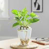 Gracefully presented in a white ceramic planter that gives the look of a wrap, with a delicate golden bow, this plant radiates elegance and promise. Its lush green leaves surrounded by calming white stones, symbolize prosperity and growth, while the refined bow adds a touch of luxury. As it flourishes, it brings a whisper of abundant blessings into your haven.