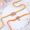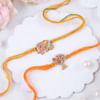 Take them by surprise with a festive ensemble doused in celebratory hues and graceful craft. Peach roses, white orchids and gold-sprayed springery, to adorn the occasion with floral enchantment, almond brittle coffee, almond brittle brownie and nutty chocolate popcorn for scrumptious indulgence and a set of two rakhis to bless the auspicious moment. The curation is truly out of the ordinary, weaving sibling bonds and serving as a constant reminder of unending love.