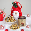 A basket of holiday wonder, Candy Cane Delight blends soft cypress leaves, candy canes, and rose gold baubles,adorned with a snow globe and a reindeer charm. Tucked inside, Santa’s bag overflows with chocolate popcorn, velvet-wrapped cookies, and a festive plum cake. A tender and whimsical ode to Christmas magic.