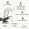 Graceful and radiant, this white orchid blossoms as a symbol of strength, admiration, and appreciation, an elegant tribute for Women's Day. - Phalaenopsis Orchid Plant - Specifications: Indoor flowering, pet-friendly plant. - Benefits: Symbolizes love, luxury, and strength, and is perfect for gifting. Associated with harmony, and prosperity also helps absorb minor pollutants and improves air quality. - Long-lasting: Lasts upto 2-3 months, these blooms add enduring beauty - Light: Grows best in bright, indirect sunlight - Water: Water lightly every 7-10 days - Vastu: Place in the North / East direction to invite positive energy - Height: 13.9 cm / 5.5 inches - Width: 13.9 cm / 5.5 inches - Plant height: 30 to 38 cms / 12 to 15 inches