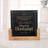 Some men carry their charm without ever trying, and that's exactly who this is for. A marble print box filled with nutty tuxedo chocolate popcorn, vegan pistachio crunch bites, and two high protein energy bars in striped paper wraps, finished with santini, dried mini sunflowers, black frosted wrap, and a thin black ribbon. Complete with a keepsake message stand with a wooden base, thoughtfully curated for the true gentleman he is.