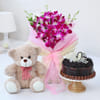 Decadent Chocolate Truffle Cake With Orchids Bouquet Combo
