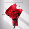 A dramatic expression of unapologetic romance, featuring striking red blooms wrapped in deep frost paper and finished with a bold black ribbon. Timeless red hues meet powerful visual depth in this statement floral hand-tied, designed to leave a lasting impression. - Total No. of Stems: 40 - Red roses - Red frost wrap - Interflora black ribbon bow - I love you more everyday tag - Dimensions: - Height: 68 cms / 27 inches - Width: 45 cms / 18 inches