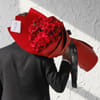 A dramatic expression of unapologetic romance, featuring striking red blooms wrapped in deep frost paper and finished with a bold black ribbon.Timeless red hues meet powerful visual depth in this dramatic floral handtied - Total No. of Stems: 40 - Red roses - Red frost wrap - Interflora black ribbon bow - I love you more everyday tag - Dimensions: - Height: 68 cms / 27 inches - Width: 45 cms / 18 inches
