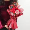 Make this Valentine's Day unforgettable with this stunning bouquet of love. Featuring a beautiful mix of red roses and pink gerberas, this bouquet is wrapped in a red frosted sheet and mauve roll, hand-tied with a red organza ribbon. As a special touch, two personalized fridge magnets are included, each showcasing your favourite image with the sweet messages, Happy Valentine's Day and Love Of My Life. Personalize the fridge magnets with your cherished memories for a heartfelt and unique gift to make this Valentine's Day unforgettable.