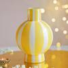 Like sunshine woven into blooms, this vibrant yellow and white striped glass vase celebrates the season with yellow marigolds,yellow roses, dried white peonies and carnations with a small diwali greeting card. Faux tuberose/crown flower accents, tassels and pearl accents add a graceful touch. This stunning, positivity-filled table centrepiece is perfect as an unforgettable Deepavali family gift.