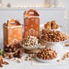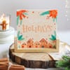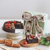 Bring home the warmth, colour, and charm of Christmas with this thoughtfully styled arrangement on an off-white tray. Fresh Cypress, Ming Fern, and Eucalyptus pair beautifully with Cotton Flowers, Gold Baubles, an Acrylic Snowflake Hanging, a White Christmas Tree Ornament, and a cheerful Happy Holidays Plaque. Complementing the greens are indulgent treats, a 350gms Plum Cake, a Gingerbread House pack with Masqa Salted Roasted Almonds and Masqa Pistachios, Atom Eatz Salted Pretzels, and TruTeen Protein Bites in Mixed Berries and Salted Caramel. A hidden Oasis Sheet keeps everything fresh, while a Burlap Snowman Ribbon adds a playful, festive finish, making it a memorable holiday gift. Product Dimensions: H - 20 inches x W - 28 inches