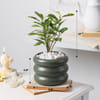 A Gold Star Croton plant, celebrated for its glorious green foliage brushed with golden flecks, flourishes in a green sculptural ring ceramic vase that adds a modern edge to its lush presence. Smooth white stones highlight its fresh vitality, while every leaf becomes a vivid symbol of prosperity and confident growth. Presented in an Interflora luxury box, this living treasure radiates the spirit of abundance and renewal.