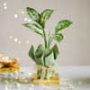 This luxury Diwali hamper is designed to delight every heart. Presented in an elegant green-and-gold round box, with a selloum plant, it includes premium salted caramel protein bites, spiced hibiscus & rose floral tea tin, peri peri almonds, and salted & roasted cashews, with a festive block print potli. White lotus subh labh hangings add an auspicious charm. A thoughtful corporate Diwali gift hamper or family curation that embodies joy and togetherness.