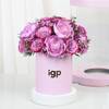 Unveil the magic of Enchanting Lavender Dreams floral arrangement, a truly unique gift. This captivating display features delicate dried lavender peonies, rich deep purple roses, and subtle purple wax flowers, creating a harmonious blend of textures and shades. The blooms are artfully arranged within a sophisticated cylindrical lavender box, which is then elegantly encased inside a larger, crystal-clear transparent cage box. This distinctive presentation makes it a stunning and memorable gift, perfect for adding a touch of serene beauty to any space.