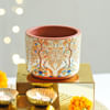 Steeped in royal tradition, Marigold Mahal radiates golden Diwali splendor. Set on the Empress Tray with a pearl-edged ribbon, this collection features black pepper cashews, roasted almonds, Epiphany almond crunch, and a vibrant orange Kalanchoe in a Kalamkari terracotta pot. It captures festive grandeur, reflecting the warmth and prosperity of the season.