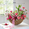 Love takes a softer, more graceful form in this arrangement, created for mom, the woman who fills your world with warmth and meaning. Blush pink blooms rest gently within a charming basket, echoing a quiet elegance that feels both tender and refined. Finished with a ribbon, it is a gentle expression of love, wrapped in beauty and meant to be felt. - Total No. of Stems: 35 - Pink Oriental Lily, Pink Carnation, Cerise Pink Rose, Pink Spray Carnation, Pink Alstroemeria, Springeri - Love You Mom Tag - Pink Lace Ribbon - Crescent Brown Basket, Jute - Dimensions: - Height: 53.5 cm / 21 inches - Width: 56 cm / 22 inches