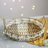 A majestic and nutty Diwali gift basket overflowing with black pepper cashews, roasted salted almonds, roasted salted cashews, peri peri almonds, and pistachios. Purple roses, purple shaded carnations and golden sprayed springery weave in festive beauty, while glowing pink & orange metal diyas illuminate the ensemble. An impressive option for corporate Diwali gits for employees or premium Deepavali gift for your loved ones.