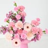 Soft pink petals and delicate textures come together in a floral arrangement designed to brighten any moment. A beautiful mix of pink gerberas, sweet avalanche roses, pink carnations, and spray carnations creates a lush display filled with warmth and charm. Accents of purple wax flowers add a subtle contrast, bringing depth and elegance to the bouquet. Thoughtfully arranged in a stylish Lilac Coupe vase, the composition feels modern yet timeless. Perfect for thoughtful gifting, heartfelt surprises, or elegant decor, this floral creation delivers beauty, freshness, and a gentle touch of joy. - Total No. of Stems: 20 - Pink Gerbera, Pink Carnation, Sweet Avalanche Rose, Purple Wax Flower - Lilac Coupe Vase.