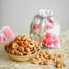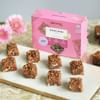 This rakhi hamper is crafted to share divine blessings and celebrate every cherished bond. Sweet avalanche roses, peach roses, and pink mini gerberas are styled in soft pink frost film. A soft suede pink hexagon box holds a beaded lotus bhaiya bhabhi rakhi set with embroidered pink and green petals, pearl and gold accents, soft pink tassels, and a flower motif with green and gold beads, part of a thoughtful combo of rakhi to honour your connection. Strawberry choco pretzels, motichoor jar cake, rich Doda barfi, almond vanilla crunch, and Thai chilli cashews complete this rakhi hamper, perfect