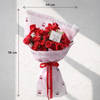 Romance speaks loudest through rich red hues and tender details in this striking bouquet. Finished with cherry-striped wrapping and a plush red velvet bow, it carries a warm, expressive charm that feels timeless and heartfelt. - Total No. of Stems: 20 - Red Roses - I love you more every day tag - Cherry and striped wrap with pink tissue & red velvet ribbon bow - Dimensions: - Height: 76 cm / 30 inches - Width: 50 cm / 20 inches