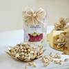 A Rosy Heirloom evokes a sense of timeless elegance and cherished beauty. Soft hues of cerise pink, aqua pink, and sweet avalanche roses bloom alongside light pink spray carnations, resting within a contemporary Kalamkari trunk. Paired with pistachios, a wholesome mix, and a tuberose jasmine luxury candle, all adorned with a pearled edge ribbon, it is a delicate keepsake of grace and indulgence.