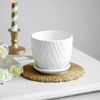 A thoughtful ensemble featuring peach roses, creamy white roses, ruffled white carnations, crisp white gerberas, full white disbuds, and a single elegant white orchid. Styled with fresh springery in a ceramic chevron planter, it reflects a blooming sense of calm and a depth that stays long after the flowers do.
