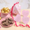Take a delightful sensory journey with this pink houndstooth box that encases the timeless charm of roses and a diamond box with secret messages, almond brittles and hazelnut rocher chocolates. It isn't just an endearing assortment but a celebration that promises to bring alive the essence of love, one floral wonder at a time.