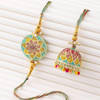 Make your unique rakhi celebrations all about the sweetness of your bond and mark it with an even sweeter festive assortment - mini box with assorted macaroons, blush pink dried peony flowers, gold eucalyptus and a designer multicolour couple rakhi, adorned with rose gold glitter ribbon.