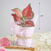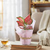 Bring them joy with a birthday surprise that feels both vibrant and tender. A lush Aglonema pink plant, wrapped delicately in a pink frosted sheet, brings the beauty of growth and good wishes. Alongside a kiwi jar cake and blueberry jar cake adorned with glittering gold bows with pearl strands, add a touch of indulgence. All treasures rest inside a pink and green striped trunk box, completed with a golden metal stick carrying a special Happy Birthday tag, making it a gift of joy, elegance, and love. Disclaimer: All cakes are Baked to order and 100% Eggless.