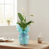 Health, prosperity and the gift of the green wrapped together in a macrame basket, ready to exude holistic healing and joy - Peacelily Plant, small wooden box with almond brittle chocolates, roasted almonds, classic cashews, haworthia succulent in white planter and a mini dried flower bouquet.